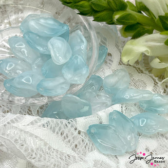 Indulge in a sweet symphony of color and charm with this delightful bead set, inspired by the whimsy and vibrancy of candied petals. Each bead captures the essence of sugary delights and blooming flowers. Perfect for adding a playful touch to your jewelry creations. Whether you're crafting a whimsical necklace, a charming bracelet, or adorning your designs with a sprinkle of sweetness, this bead set offers endless possibilities for expressing your unique style. 6 petal beads per set. Petals measure 20mm X 12.2mm. Available in purple, yellow, and blue hues