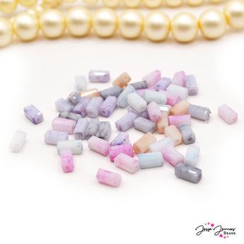 Add a soft, dreamy touch to your designs with these Opaque Baking Painted Crackle Glass Beads! Featuring a faceted cuboid shape, these beads have a unique crackle finish that creates a beautiful, textured effect. The mix includes 40 beads in a calming palette of pastel hues, including light blue, purple, pink, and grey, perfect for creating designs that feel both serene and stylish. Measuring 6.5x3.5x3.5mm with a 1mm hole