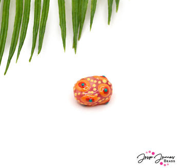 This stunning focal bead features a blaze of colors! Dive into firey reds mixed with stunning orange, yellows, and a touch of dark green for a high-contrast appearance. Each bead measures 13mm x 18mm. Sold individually.