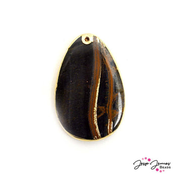 A beautiful black stone pendant with a romantic twist. This pendant features a touch of gold guilding an light brown pattern. Stone pendants may vary in size due to the stone cutting process. Colors and stone texture may also vary slightly. Pendant measures approx. 55mm x 36mm x 7 mm.