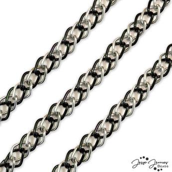 Add a bold and lightweight finish to your neckalces, bracelets, and more with this intertwined two-toned aluminum chain. Links are hollow and lightweight for easy to wear jewelry. Chain sold in 18 inch lengths
