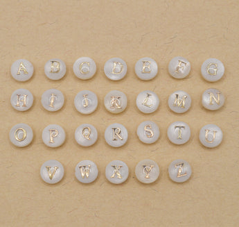 Add a personalized touch to your jewelry designs with our Natural Freshwater Shell Beads, featuring stunning golden-plated brass-etched metal embellishments. These flat round beads, in a soft seashell color, each feature a unique letter from A to Z, perfect for creating custom, alphabet-themed jewelry. The beads measure 8x35mm and come with a horizontal hole size ranging from 0.50-0.70mm, making them ideal for necklaces, bracelets, and earrings. Each set includes approximately 26 pieces, one for each letter of the alphabet, allowing you to craft meaningful, personalized pieces.
