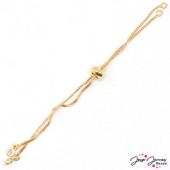 This trendy adjustable clasp is perfect for creating adjustable bracelet or necklace designs. Easy slider makes it easy to extend or shorten the length of your jewelry piece. Available in either gold or silver color. Easy hoops on the ends of the extenders easily connect to your favorite chain and more via jump rings.