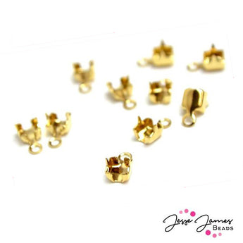 Cup chain it up! Connect these cup chain end findings to the end and you will be in sparkle jewelry heaven! These gold end findings fit 8.5ss chain - a very standard size in cup chain. Insert end of cup chain into the finding and bend end finding prongs on top to secure the chain. Use a pair of Flat Nose Pliers to secure the finding.