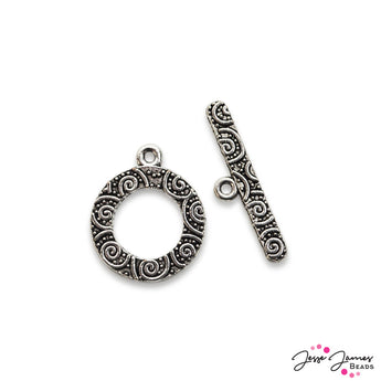This heavily textured toggle clasp adds interesting feel to your beaded jewelry project. Perfect for bracelets, necklaces, and more. Comes in a set of 3 toggle clasps.