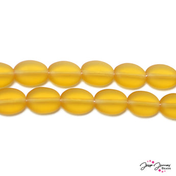 Yellow Matte Topaz Flat Oval Czech Glass Beads 12x9 mm 50 pieces
