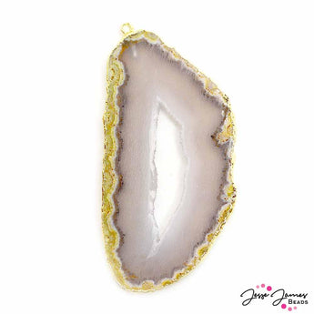 The eyecatching beauty of a geode with all the convience of a lightweight charm. This pendant measures 97mm x 47mm x 5mm. Natural stone cuts may vary in size, shape, and color. All pendants are gilded with gold plating around the edges and feature a gold bail at top.