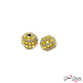 These sweet and calming beads feature large rhinestone accents and silver metal details. Each bead measures 17mm. Hole size measures 3mm.