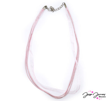 Add a delicate look to your next jewelry piece with this simple ribbon necklace blanks. Each blank comes pre-clasped, just add your favorite beads and charms to create your own unique look. Available in Pink and Blue colors. Each necklace measures 18-inches in length