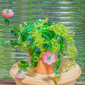 Learn how to make your own beaded plants! This kit comes with everything you need to create 2 adorable mini beaded plants. Each kit includes 1 mini terracotta flower pots, 3ft cuts of 24-gauge wire, a 1.5ft cut of 26-gauge wire, 1 foam ball, bead mix, and a bag of moss. Please note beads in the mix may vary.
