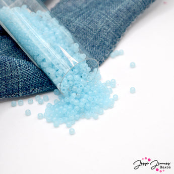 Dive into this crisp sky blue color. This bright blue features a semi-transparent finish, perfect for creating light and airy jewelry. Each tube contains 10 grams of sparkling seed beads. 11/0 seed beads measures approx. 2mm round.