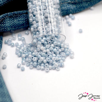 Dominate the clouds above with this stunning blue and grey hue. These beads feature a marbled finish, creating a cloudy sky effect. Each tube contains 10 grams of sparkling seed beads. 11/0 seed beads measures approx. 2mm round.