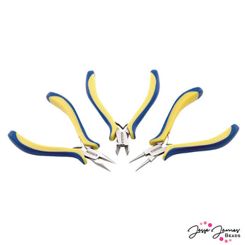 This 3 piece tool kit features everything you need to start your jewelry-making journey. Each set includes Chain nose pliers, Round nose pliers, and a semi-flush cutter. All tools feature a comfortable ergonomic handle and a double leaf spring for ease of use and to limit hand fatigue while working.
