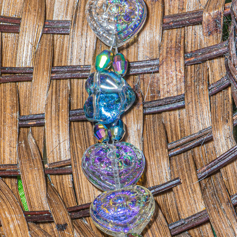 This long 9-inch heart themed bead strand features a blend of pressed and faceted glass hearts accented with a few faceted glass spacers making this bead strand 100% glass. Each strand includes a combination of single hole and 2-hole beads, perfect for creating layered and dynamic jewelry pieces. Largest piece measures 14mm x 15mm x 8mm. Smallest piece measures 6mm x 4mm. These stunning beads all feature an AB finish giving them a blue and purple look that shifts in the light.
