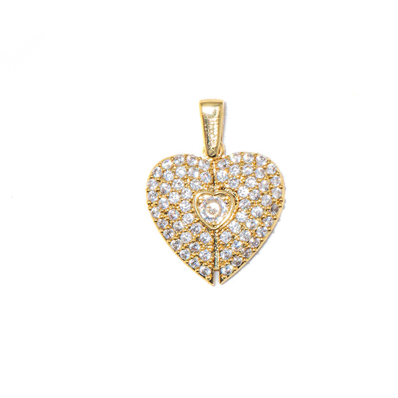 Sparkling with micro pave cubic zirconia and finished in real 18K gold plating, this openable heart pendant is perfect for adding a touch of elegance and versatility to your jewelry designs. Measuring 18×25×5mm with a 4.5×2mm hole, it’s ideal for necklaces, bracelets, or charm projects that deserve a little extra sparkle. 1 per order.