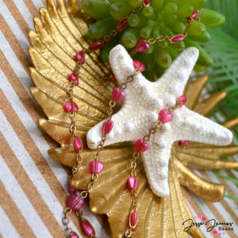 Whether crafting a charm bracelet or a layered necklace, This lovely beaded chain adds a heartfelt touch to any jewelry creation. Sold in 24-inch Cuts. Cut per order.