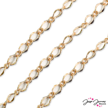 Rose gold goes with everything. The perfect blend of gold and silver metal is rose gold - this chain is soft and elegant for jewelry making. Unique chain link styles add intrigue to your designs. Sold in 1 meter lengths. Links measure 8.5mm x 5.5mm x 1.5mm