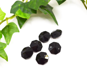 Add classic elegance to any piece with these stunning black glass connectors. With the sparkle and shine of Austrian glass, these connectors are perfect for adding to earrings, necklaces, and more for a pop of eye-catching color. Each set includes 6 pieces. Each piece measures 14mm x 14mm x 7mm. Hole size 1mm.