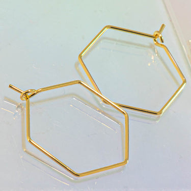 18K Gold Hexagon Hoops Earring Findings
