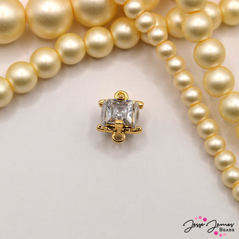 The Bit Of Gold Connector Charm features a sleek cube link design with clear glass for a touch of modern elegance. Real 18K gold-plated for a long-lasting, luxurious finish, this charm measures 11x8.5x8.5mm with a 1.2mm hole. Perfect for adding a sophisticated, geometric element to your DIY jewelry creations.