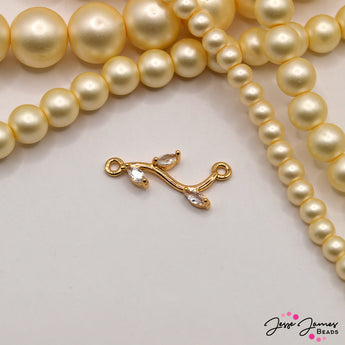 Features a beautiful branch design adorned with micro pave clear cubic zirconia for a shimmering, natural touch. Finished in a light gold, long-lasting plating, and cadmium-free and lead-free for safe wear, these connectors measure 20~21x8.5x3mm with a 1.5mm hole. Perfect for adding a refined, organic element to your jewelry designs, this connector elevates any custom creation.