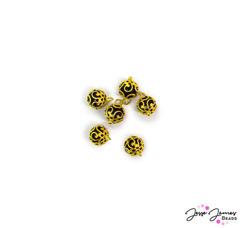 These delicate gilded cage-inspired charms feature a lightweight glass center adorned with bright gold metal detailing. These charms come in a set of 6 pieces. Each piece measures 14.5mm x 9.5mm.
