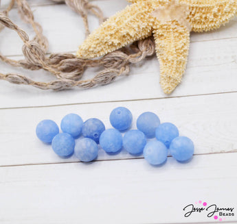 Dive into a world of undersea treasure with these frosted glass beads. Each set include 12 beads. Each bead measures 8mm round. These beady treasures are perfect for earrings, necklaces, and more.