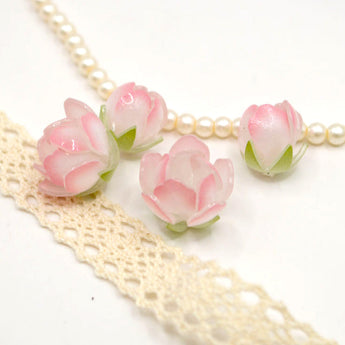 Glass Flower Bead Set in Pink Roses