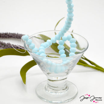 Dive into these dreamy light sky blue beads. These mini rondelle beads feature an opaque finish for maximum color concentration. 65 pieces per strand. Each bead measures 8mm x 6mm. Hole size measures 1mm.