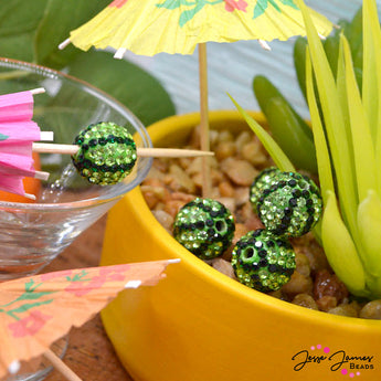 Add a splash of fruity fun to your jewelry creation. This playful pair of watermelons features rhinestone sparkle perfect for earrings, keychains, charm bracelets, and more. Sweeten up your jewelry creations with this pair of juicy beads! Each bead measures 16mm. Sold in pairs.
