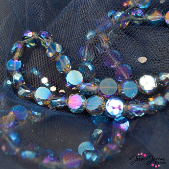Dive into the soul cavern with these beautiful blue AB finished beads. 10mm sized beads. 80 beads per strand.