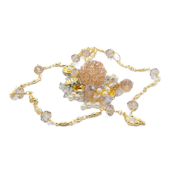 Embrace stunning color and beauty with this creamy-gold colored bead mix. This mix features faceted glass, mini glass pearls, large rhinestone spacers, a large beaded focal bead, and a 18-inch piece of Chain Reaction Beaded Chain. Largest bead in mix measures 20mm. Smallest bead in mix measures 4mm.