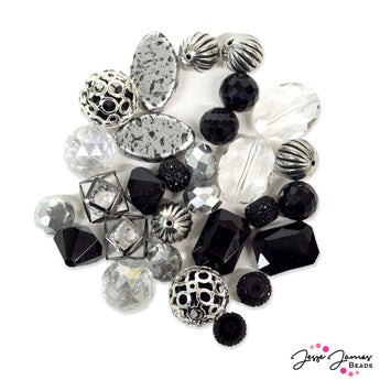 Dive into elegant black paried with sparkling silver color. Budget friendly beads perfect for building your bead stash. This black bead mix features a blend of glass, acrylic, and more to create wallet-friendly jewelry pieces.