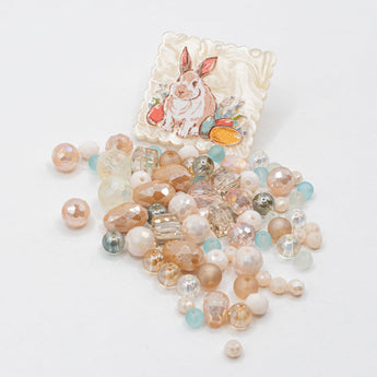 This festive Spring-inspired bead mix features an assortment of glass and acrylic treasures perfectly pairing a large focal bunny pendant. Largest piece in mix measures 35mm x 35mm x 2mm. Smallest piece in mix measures 4mm.