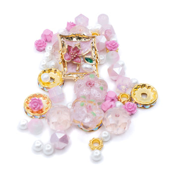 Dive into romantic splendor with these bright pink beads. Each mix features a metal and enamel focal charm, glass faceted beads, mini glass pearls, crackled glass, rhinestone spacers, and gold-plated metal spacer beads. Largest piece: 26mm x 19mm x 5mm. Smallest piece: 4mm.