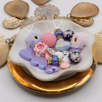 Soft, dreamy, and oh-so-pretty, this lavender silicone bead mix features bright acrylic beads, fluffy large-hole accents, and fun spacers for a sweet pop of pastel charm. Perfect for creating whimsical bracelets, bead-able pens, and keychains with a touch of calm and color! 19 Pieces per Mix. Each mix features an assortment of silicone, acrylic, glass, rhinestones, and faux fur. Largest bead measures 18mm. Smallest bead measures 12mm x 4mm.