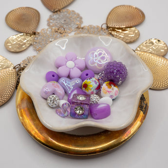 Rich and radiant, this dark purple silicone bead mix features bright acrylic accents, bold large-hole beads, and playful spacers for a touch of elegance with a fun twist. Ideal for crafting stylish bracelets, bead-able pens, and keychains that stand out! 20 Pieces per mix. Each mix features silicone beads accented with acrylic beads, clay rhinestone boho beads, and rhinestone spacers. Largest bead in mix measures 26mm x 26mm x 8.5mm. Smallest bead measures 10mm.