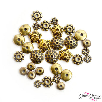 Each two-tiered bead mix features a tier of bead caps and a tier of coordinating spacer beads. All Tierracast beads are high-quality lead-free components that are finished with electroplating for various colors. Tierracast products are made in Santa Rosa, California.