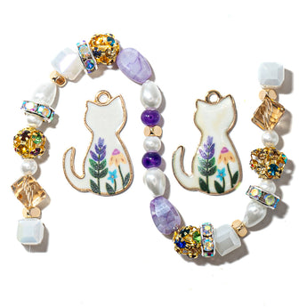 These adorable cat mini bead mix features a pair of adorable cat charms paired with faceted glass and plated-metal beads. Cat charms measure 30mm x 15mm x 2mm with a 2mm inner bail size. Smallest bead in mix measures 4mm.