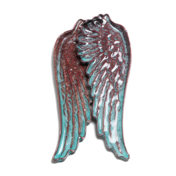 Add a graceful touch to your creations with this handmade Angel Wing Pendant from Gardanne Beads. Coated in seafoam green enamel with subtle reddish-brown undertones, each brass wing is one-of-a-kind and perfect for bringing a soft, ethereal charm to necklaces, earrings, or mixed media pieces. Measures 50mm X 18mm.