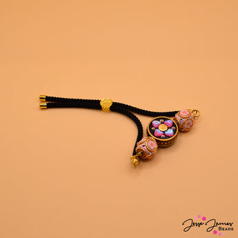 This playful cord base can easily be attached to you breaded focal, making a beautiful and adjustable bracelet. Cord can stretch to 8 inches before focal pieces are added! Easily add your beaded focal and easily slide to adjust the size for the perfect fit. Cord is 3mm thick.