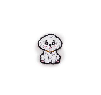 This adorable white dog focal bead is the perfect addition to keychains, necklaces, and more. Made with a Food Grade Eco-Friendly Silicone. Each bead measures 30.5x24x7mm, Hole: 3mm.