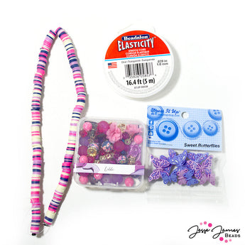 Are you ready to frolic? This playful pink and purple blend features a heish strand, Color Trends Bead Mix in Lilli, Dress It Up embellishments in Sweet Butterflies, and a spool of Beadalon Elasticity. This bright and playful bundle is perfect for gifting to a new beader or to help get your bead stash stretch bracelet ready. Includes everything you need to create adorable stretch bracelets.