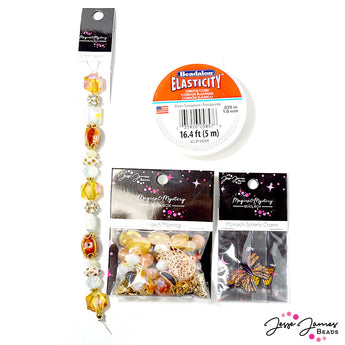 Missing Spring, we have you covered. This bright and playful butterfly themed bundle is perfect for anyone who loves to make stretch bracelets. stretch bracelets are the perfect starting project for any new beader and are a great way to create gifts quickly. This bundle includes 1 Summer Migration Bead Strand, 1 Monarch Morning Bead Mix, a set of Monarch Butterfly Charms, and a spool of Beadalon Elasticity.