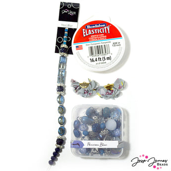 Treat yourself, or someone you know, to a lux getaway with this parisian inspired bead bundle. This bundle features a color classics bead strand in steel blue, a color trends bead mix in parisian blue, a pair of rainy day cha cha tassels, and a spool of elastic stretch cord. This bundle is perfect for gifting with everything you need to create adorable stretch bracelets!