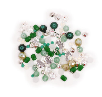 This playful plant-themed mini bead mix features rich green tones! Part of the March 2025 Magical Mystery Bead Box. Largest piece measures 14mm x 10mm x 3mm. Smallest bead measures 6mm x 4mm.