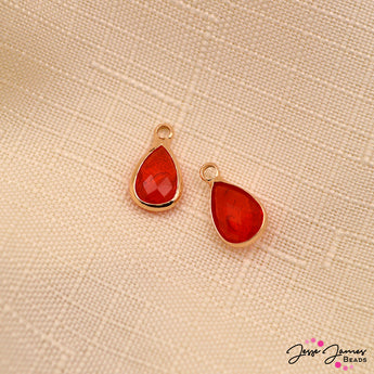 These bright ruby colored glass charms are perfect for creating gifts for July birthday celebrations. These adorable 7mm x 10mm charms are perfect for earrings, bracelets, and more. 2 per set.