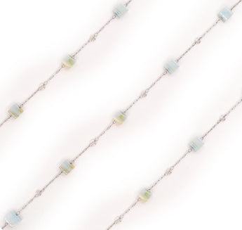 This pre-cut chain features a stunning blend of natural stone and bright silver metal. 18 inches of chain. 6mm stone links.