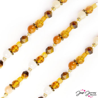 The Solar Plexus chakra is our center for owning our personal power, identity, freedom of choice and authenticity. Call on your solar plexus for motivation and purpose! Located just above the diaphragm, this energy point does well with stones like yellow jade, which aid in boosting optimism, self-improvement and guidance when making decisions. Included in this essential bead strand are faceted yellow jade rounds, yellow jade cubes and star-cut tiger eye stones - all stones from Dakota Stones! The largest bead on strand measures 7mm. Also included in this made-with-love strand are Jesse James Beads metals, glass rondelles and sparkling rhinestone spacers.