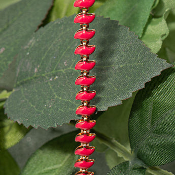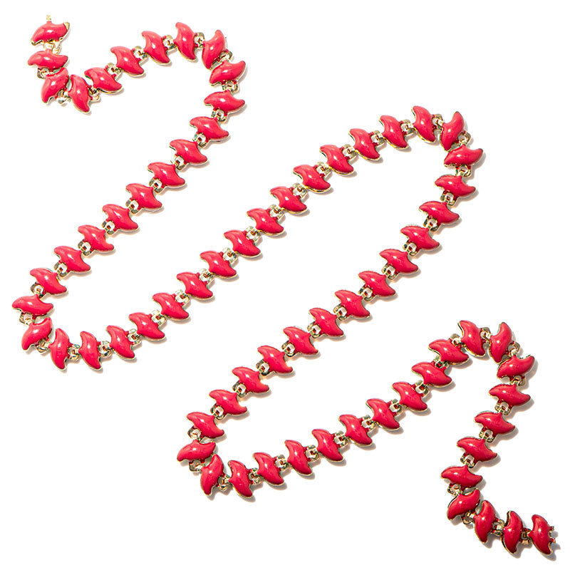 This stunning custom-dyed enamel chain features a fizzing pop of cherry color. Each chain is hand-dyed by the color experts at Jesse James Beads. This chain features a brass metal base with a high-quality gold plating. Sold in 24-inch pre-cut, perfect for necklace making! Links measure 6mm x 6mm x 3.5mm.